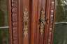 Ende 19. Jh., Eiche massiv, braun gebeizt, zweitüriger, komplett zerlegbarer Schrank, im Sockel mit breitem Schubkasten, seitlich flankiert von kannelierten Dreiviertelsäulen, innen fünf Einlegeböden, an Zahnleiste verstellbar, Türfüllungen und Gesims mit Oberflächenschnitzerei, verziert, eine Glasscheibe gesprungen, sonst guter Originalzustand, mit Schlüssel, Maße 219 x 137 x 58 cm.