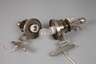 deutsch, um 1920, ungemarkt, Messing vernickelt, schlanker Wandblaker aus Nussbaum mit aufgesetzten Fassungen, dieser ornamental verziert, mit zylindrischem, weiß unterfangenen Klarglasschirm, mit geometrischem Schliffdekor, zweiflammig elektrifiziert, Altersspuren, H ca. 110 cm.