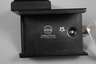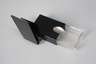 Entwurf Maria Brandt, um 1930, gemarkt Ruppel geschützt, schwarz gefasstes Weißblech, partiell vernickelt, Glaseinsatz, Ascher mit herausnehmbarer Schale und Streichholzschachtelhalter, H 9,5 cm.