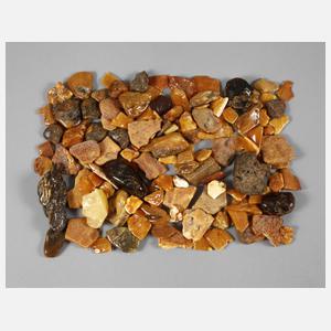verschiedene Farben und Formen, meist anpoliert, teilweise Butterscotch, Stücke von 2,5 bis 5,8 cm Länge.