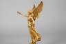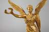 um 1890, seitlich auf der Plinthe signiert Marqueste, Bronze gegossen und vergoldet, auf einer Halbkugel stehende Siegesgöttin im langen Gewand, mit würdevoller Miene den rechten Arm ausstreckend, in dem sie einen Lorbeerkranz hält, die linke Hand fasst einen Palmzweig, auf quadratischen flachen Marmorsockel montiert, min. berieben, linker Oberarm mit kleiner Bohrung, Palmwedel lose, H ges. 41,5 cm. Künstlerinfo: frz. Bildhauer (1848 Toulouse bis 1920 Paris), Schüler von Francois Jouffroy und Alexandre Falguière, erhielt 1871 den Prix de Rome, ab 1874 nahm er regelmäßig an den Salons und den Weltausstellungen teil, die zahlreich erhaltenen Auszeichnungen brachten ihm vorwieg. öffentliche Aufträge, u.a. von der Stadtverwaltung von Paris ein, er gestaltete Allegorien, mythologische Gruppen und historische Portraits, die bis heute in den Tuilerien, im Jardin du Luxembourg, vor dem Rathaus von Paris oder auf der Pont Alexandre III. zu sehen sind, zwischen 1893 und 1900 wirkte Laurent Marqueste als Professor an der École nationale supérieure des beaux-arts de Paris, ab 1894 Mitglied der Académie des Beaux-Arts, Quelle: Internet.