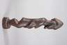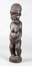 20. Jh., Tropenholz geschnitzt und dunkel gefasst, stehende weibliche Figur mit geritzter Ornamentik, trocknungsrissig, H 48 cm.