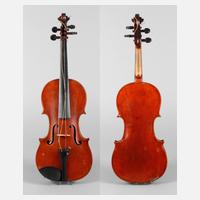 Mitte 19. Jh., innen mit Reparaturzettel Benedikt Lang, Spezialwerkstätte für Geigen, Celli und Kontrabässe, Mittenwald/Karwendel 1987, geteilter, kaum geflammter Boden in rötlich braunem Lack, umlaufende dreiteilige Randeinlage, rissfreie Decke, restauriert, L Korpus 35,4 cm.