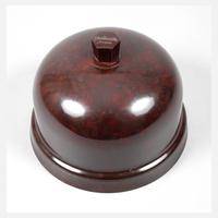 Frankreich, um 1930, gemarkt Yalacta, Made in France, Teller mit abnehmbarer Glocke aus dunkelbraunem Bakelit, innen mit Aluminium ausgekleidet, leichte Alters- und Gebrauchsspuren, D 22 cm.