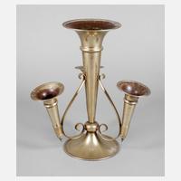 1920er Jahre, electro plated nickel silver, Messing mit verputzter Versilberung, drei herausnehmbare Blumensteckeinsätze, starke Gebrauchsspuren, H 30 cm.