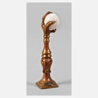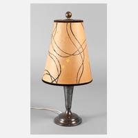 1930er Jahre, gestempelt I/O Straußenmarke OX, Messing und Metall versilbert, der bedruckte Schirm aus Pappe mit Samträndern, elektrifiziert, Altersspuren, Funktion nicht geprüft, H 45 cm.