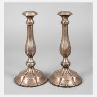 1. Hälfte 19. Jh., gepunzter Dianakopf, unleserliche Meistermarke ”AV”? feine Oberflächengravur, Ligaturmonogramm, Gebrauchsspuren, gefüllt, H je 31,5 cm.