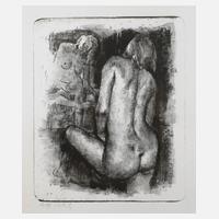 weiblicher Rückenakt vor Spiegel, Lithografie, links unter der Darstellung nummeriert und signiert „13/XX C. O. Müller“, links oben in Blei bezeichnet und betitelt „6886/2M Francoise R.“, im Druck monogrammiert und datiert „C. O. M. (19)67“, unter Passepartout, hinter Glas gerahmt, Darstellungsmaß ca. 32,5 x 27,0 cm, Falzmaß ca. 60,5 x 49,5 cm.Künstlerinfo: genannt „Cézanne des Altmühltals“, dt. Maler und Graphiker (1901 Coburg bis 1970 München), ab 1918 Besuch der Staatlichen Kunstgewerbeschule, 1923-24 Meisterschüler bei Robert Engels, nachfolgend Studium an der Staatlichen Akademie der bildenden Künste, Meisterschüler von Karl Caspar, 1927-41 als Werbegrafiker tätig, ab 1927 Mitglied im Künstlerbund München, seit 1928 Mitglied der Münchner Künstlergenossenschaft, ab1949 im Altmühltal ansässig, 1953 Präsident der „Neuen Münchner Künstlergenossenschaft“, 1954-70 Organisator an allen internationalen Ausstellungen im „Haus der Kunst“, Quelle: Wikipedia.
