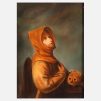 Halbfigurenbildnis eines ins Gebet vertieften Mönchs im braunen Habit, Pastell, links unten monogrammiert ”R.B.” sowie undeutlich datiert und bezeichnet ”1844 P...”, ungerahmt, Maße ca. 29 x 23 cm.