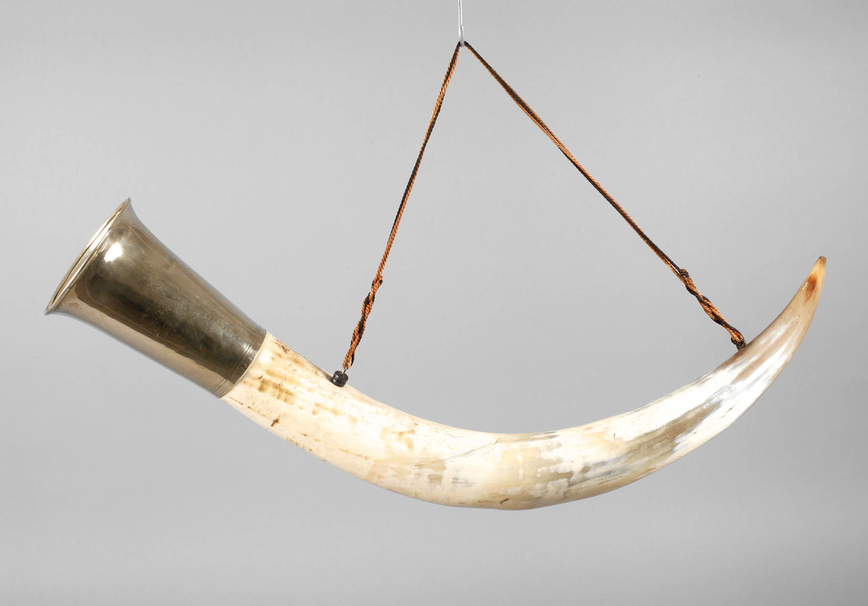 um 1920, mit schlichter Neusilbermontierung sowie zwei Ösen zur Aufhängung, L ca. 80 cm.