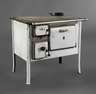 um 1940, Firma Voss, Dauerbrandherd mit Backröhre und großer gusseiserner Kochfläche, Essenabgang nach oben, funktionstüchtig, normale Gebrauchsspuren, H 74 x B 81 x T 61 cm.