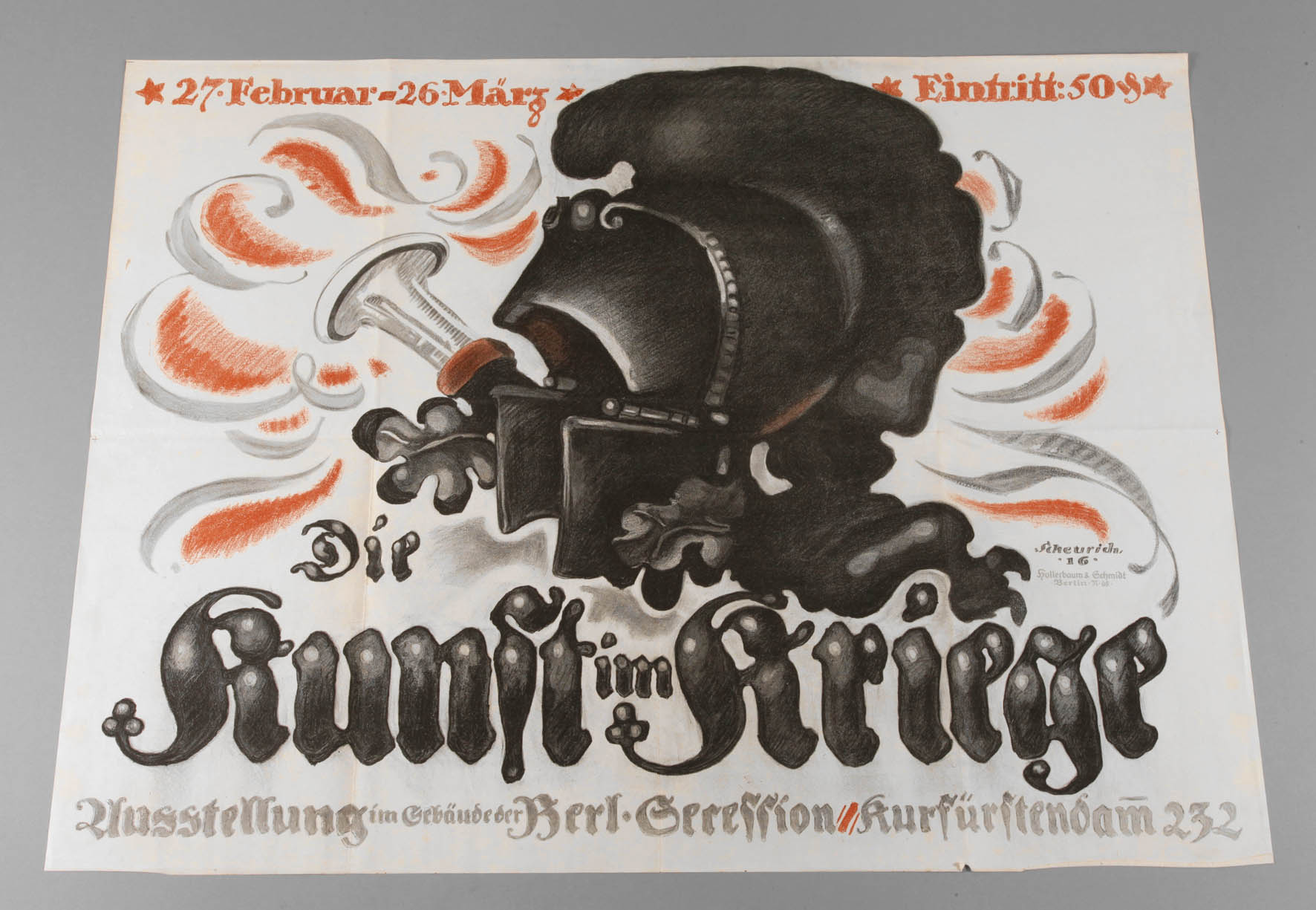 Entwurf Paul Scheurich 1916, Herst. Hollerbaum & Schmidt Berlin, Farblitho auf Papier, knickspurig, Altersspuren, Maße 70 x 94 cm.