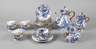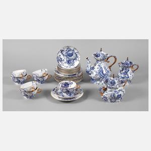 neuzeitlich, kyrillische Marke der Leningrader Porzellanfabrik, Schriftzug ”Made in Russia”, Porzellan mit reicher kobaltblauer Unterglasurbemalung und Vergoldung, Dekor aus Blüten und Ranken, die Kannen mit hohen Deckeln und spitzen Knäufen, Kernstück und sieben Gedecke, gute Erhaltung, H max. 24 cm.