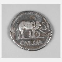 Denar, um 49 v. Chr., Heeresmünzprägung, Julius Caesar (100–44 v. Chr.), Elefant auf Schlange/Drache, Rv. Simpulum, Aspergill, Axt und Galerum mit Apex, G ca. 3,5 g, ss.
