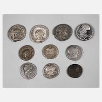 15 Stück, wohl Nachprägungen griechischer und römischer Münzen, davon 6 x Silber.