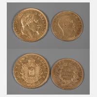 20 Francs 1965 A, sowie 10 Francs 1859 A, Napoleon III., G ca. 6,45 g und 3,22 g, ss+ und ss, im Etui mit Münzpass.