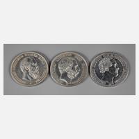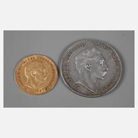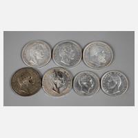 3 Mark Preußen 1908, 3 x 5 Mark Preußen (1898, 2 x 1904), 3 Mark Bayern 1908, 5 Mark Bayern 1876 sowie 5 Mark Württemberg 1903.