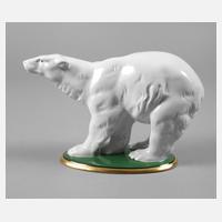 1920er Jahre, Entwurf Hans Ischinger, signiert, grüne Stempelmarke mit Schriftzug Bavaria, Modellnummer 68, naturalistische Ausformung, schreitender Eisbär, Bemalung in Grün, Schwarz und Gold, minimale Herstellungsfehler, L 25 cm.