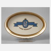1928, Heinrich-Elfenbein-Porzellan ”Graf Zeppelin”, blau bedruckt und vergoldet, gute Erhaltung, L 11,5 cm.