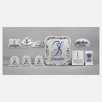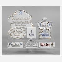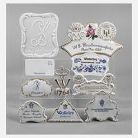 von Porzellanmanufakturen, dabei Aelteste Volkstedter Porzellanmanufaktur, Sitzendorf, Rosenthal, Spode, Stoke-On-Trend England, KPM Berlin, Ens Volkstedt und Kister KG Scheibe-Alsbach, farbig bemalt, bedruckt und vergoldet, L max. 22 cm.