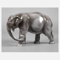 Entwurf Carl Nacke um 1920, unsigniert, grüne Stempelmarke Fraureuth Kunstabteilung, graue Unterglasurbemalung, schreitender indischer Elefant in naturalistischer Ausformung, gute Erhaltung, L 26 cm.