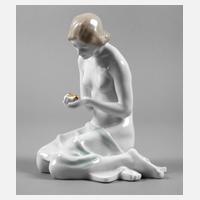Entwurf G. Engel 1955, signiert, Modellnummer 5013, grüne Stempelmarke Germany Kunstabteilung Selb, Ausführung in Weißporzellan, auf einem ovalem Sockel sitzendes Mädchen mit Pferdeschwanz, unbeschädigt, H 10 cm.