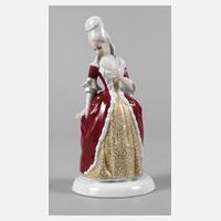 Entwurf Karl Himmelstoss 1913, grüne Stempelmarke Selb Bavaria 1930, original Klebeetikett, Malermonogramm ”A.G.”, Modellnummer 203, polychrome Aufglasurbemalung, das Kleid goldbedruckt, unbeschädigt, H 18,5 cm.