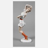 Entwurf Lore Friedrich Gronau 1939, Modellnummer 1714, grüne Stempelmarke Germany Kunstabteilung Selb 1950er Jahre, Schriftzug Ursula Deinert, Dekornummer 8000, Biskuitporzellan, teilglasiert und farbig gefasst, gute unbeschädigte Erhaltung, H 30 cm.