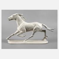 Entwurf Albert Hinrich Hussmann 1936, signiert, Ausformung nach 1957, grüne Stempelmarke mit Schriftzug Germany, Modellnummer 1610, Darstellung des trabenden Hengstes Hannibal in Biskuitporzellan, gute Erhaltung, L 57 cm.