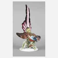 Entwurf Fritz Heidenreich 1935, Modellnummer 1575, signiert, unter dem Sockel bezeichnet, Ausformung nach 1957, grüne Stempelmarke Classic Rose Collection, Weißporzellan farbig staffiert, Schnabeloberseite minimal bestoßen, H 50 cm.