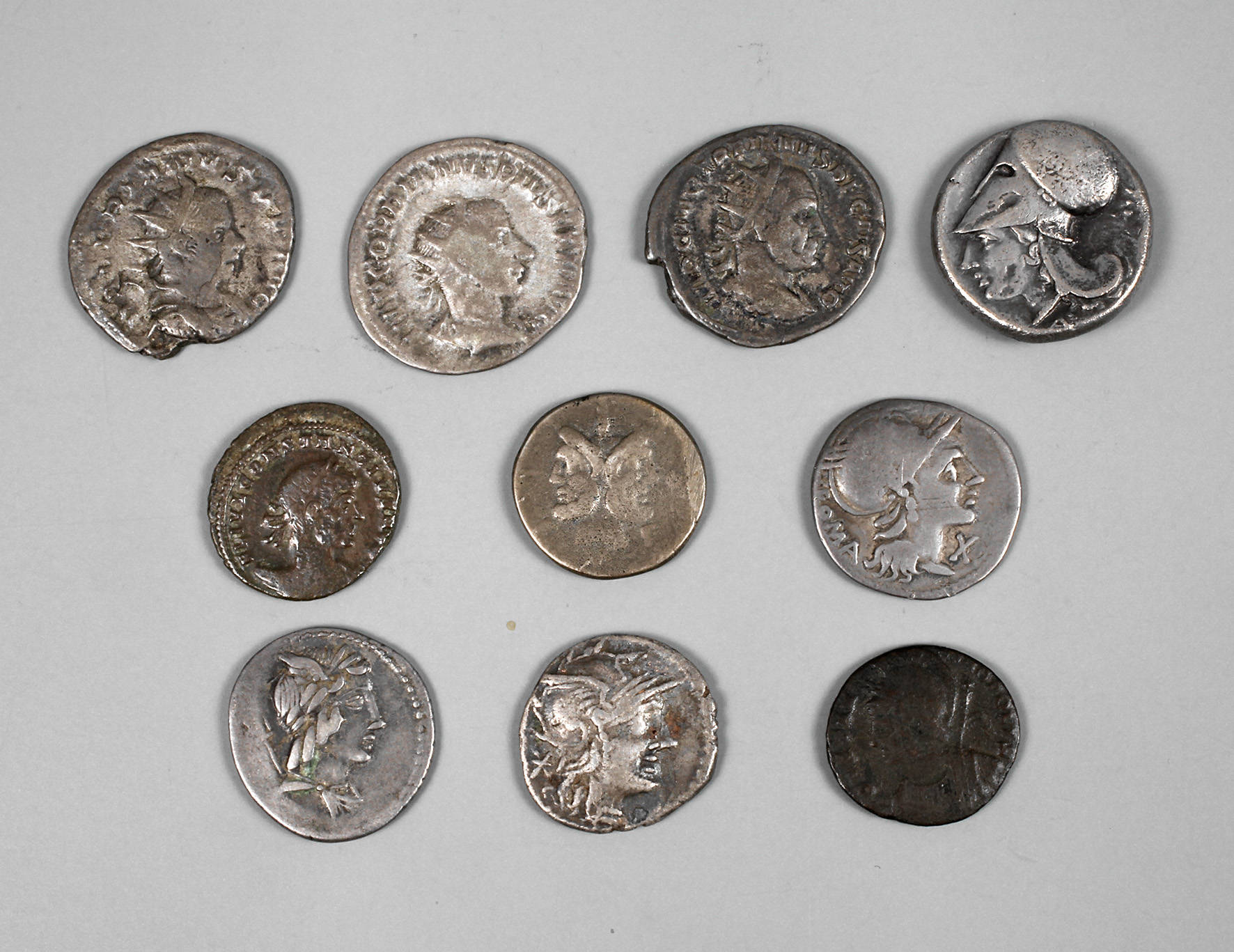sieben Stück Silber, sonst Bronze, D von 16 bis 21 mm, nicht autorisiert geprüft.