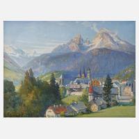 Blick auf Berchtesgaden mit Stifts- und Pfarrkirche, umgeben von frischem Grün, vor dem sich imposant erhebendem, teils schneebedeckten Watzmann, pastose Landschaftsmalerei in freundlicher Farbigkeit, Öl auf Leinwand, Mitte 20. Jh., rechts unten signiert „Th. Urtnowski“, rückseitig betitelt „ Watzmann Berchtesgaden Morgen“, etwas reinigungsbedürftig, gerahmt, Falzmaß ca. 48,5 x 66 cm. Künstlerinfo: dt. Maler und Grafiker (1881 Thorn bis 1963 Danzig), Schüler von Albert Maennchen in Berlin, Studienreise nach Paris, Quelle Vollmer, Künstlerlexikon Ostpreußen und Westpreußen und Internet.