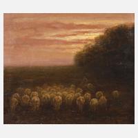 stimmungsvolle pastorale Landschaft, im Wiederschein der untergehenden Sonne, minimal pastose Malerei, Öl auf Leinwand, um 1920, rechts unten signiert ”J. H. W. van den Brink”, in Goldstuckleiste (bestoßen) gerahmt, Falzmaß ca. 30 x 36,5 cm. Künstlerinfo: eigentlich Jan Hendrik Willem van den Brink, niederländischer Maler, Restaurator und Zeichner (1895 Amersfoort bis 1966 Amersfoort), Schüler von Baruch Leao Lopes de Laguna und Albert Verschuuren, ab 1912 Schüler von Albert Neuhuys, tätig zunächst in Laren, danach bis 1923 in Soest, bis 1932 in Amsterdam, bis 1939 in Den Haag, bis 1947 in Apeldoorn-Loenen, später bis 1951 in Rijswijk und schließlich in Zeist, ab 1921 Mitglied der Künstlervereinigung ”Onafhankelijken” (Sezession Amsterdam), deren Ausstellungen er beschickte, Quelle: Vollmer, Saur, Rijksbureau voor kunsthistorische Documentatie und Info des Dokumentationszentrums für Bildende Kunst Utrecht.