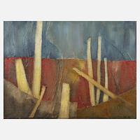 Arrangement aus übermalten, übereinander angeordneten Rupfenstücken und Schnüren in ausgewogener Farbigkeit, 1. Hälfte 20. Jh., rechts unten monogrammiert „W.W.“, rückseitig bezeichnet „William Wauer“, leichte, materialbedingte Erhaltungsmängel, in ca. 9,5 cm breiter, flacher Leiste gerahmt, Falzmaß ca. 61 x 80,5 cm. Künstlerinfo: eigentlich William Ernst Hermann Wauer, dt. Maler, Grafiker und Regiseur (1866 Oberwiesenthal bis 1962 Westberlin), Besuch der Gymnasien in Dresden und Halle, 1884–87 Studium an der Kunstakademie Dresden und Berlin, ab 1895 Studium an der Akademie in München, 1896–97 Aufenthalt in Rom, zweijährige Studienreise nach San Francisco und New York, nach kurzzeitigem Studium der Philosophie und Kunstgeschichte in Leipzig, ab ca. 1900 Herausgeber der Monatszeitschrift Quickborn und Mitarbeiter der Werbeabteilungen von Kupferberg, Kathreiner, Stollwerk und der Lingnerwerke Dresden, mit Theodor Fritsch Gründer des „Dresdner Tagesanzeiger“ und Verleger der Zeitschrift „Dresdner Gesellschaft“, ab 1905 Regiestudium an der Schauspielschule des Deutschen Theaters und anschließend unter Max Reinhardt Theaterregisseur am Deutschen Theater und am Hebbel-Theater, 1911 Inszenierung der Pantomime „Die vier Toten der Fiametta“ von Herwarth Walden, Mitglied der Künstlergruppe „Der Sturm“ und Mitarbeit an der gleichnamigen Zeitschrift, ab 1913 Beschäftigung mit der Filmkunst und Regie von mehreren Spielfilmen, 1916 Gründung der Filmgesellschaft „W. W.-Film Wauer & Co.“, die sechs Filme produzierte, 1918 erstmalige Beteiligung mit eigenen Skulpturen an der 61. und 65. Ausstellung der Sturm-Galerie von Herwarth Walden, wo er durch kubistische Portraits für Aufsehen sorgte, 1922 Mitarbeit an der dritten Bauhaus-Mappe, 1924 Gründung der „Internationalen Vereinigung der Expressionisten, Kubisten, Futuristen und Konstruktivisten“, mit Machtergreifung der Nationalsozialisten wurde die Vereinigung 1933 verboten, ab 1928 auch tätig für den Berliner Rundfunk, obwohl er den Nationalsozialisten nicht kritisch gegenüberstand, erteilte 1941 die Reichskulturkammer ein Arbeitsverbot, ab 1945 wieder künstlerisch tätig, seit 1957 Vorsitzender des Verbands Deutscher Kultureinheit, seine letzte Ruhe fand er in einem Ehrengrab auf dem Waldfriedhof Dahlem, Quellen: Vollmer, Wikipedia und Internet.