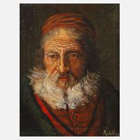 bärtiger älterer Herr mit Hausrock, vor dunklem Hintergrund, minimal pastose Malerei, Öl auf Leinwand, Mitte 20. Jh., rechts unten signiert und bezeichnet ”RWolf cop.”, Craquelure, geringe Erhaltungsmängel, gerahmt, Falzmaß ca. 27,5 x 22 cm.