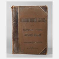 Ippologitscheskij atlas dla nagladnago izutschenija verkhovoj loschadi (Der hippologische Atlas zum anschaulichen Studium der Reitpferde), von Alexander Bilderling, St. Petersburg 1889, Großfolio-Format (46,5 x 34 cm), 3 Blätter, mit 38 (von 49)Tafeln mit meist farbig lithogr. bzw. getönten Abb. von Pferden, ihrer Anatomie, Bewegungsabläufen, Pflege, Rassen etc., Mohairpapier-Vorsatz, im orig. Halbledereinband mit Deckelprägung, unvollständiges Exemplar mit Alters- und Gebrauchsspuren, einige handschriftl. Annotationen in Blei, Einband an den Kanten lädiert.