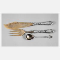 wohl Polen, Ende 19. Jh., Silber gestempelt 875, mit Kopfpunze, geätzte und vergoldete Klingen, dazu ein ergänzter Eislöffel, ebenfalls gestempelt 875 mit Herstellerpunze HB, Gebrauchs- und Altersspuren, L max. 27,5 cm, G total ca. 249 g.