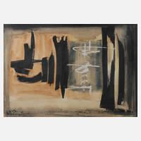 weiße und schwarze Zeichen auf bräunlich-orangem Grund, Aquarell und Deckfarben auf Papier, 2. Hälfte 20. Jh., links unten signiert ”E. Punto”, in Bilderträger gerahmt, Blattmaß ca. 49,5 x 67 cm.
