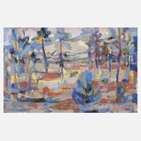 Blick in eine sonnendurchflutete Landschaft, mit dem leuchtenden Laub der einzelnen Bäume, abstrahierende Landschaftsmalerei in kraftvoller, warmer Farbigkeit, Deckfarben auf Papier, in der Darstellung signiert und datiert „U Stahl (19)66“, in den Ecken herstellungsbedingt mehrere Löchlein von Reißzwecken, in Passepartout montiert, Passepartoutausschnitt ca. 38 x 57,5 cm. Künstlerinfo: dt. Malerin und Kunsterzieherin (1906 Kiel bis 2001 Bad Dürrheim), 1918–23 Besuch des Gymnasiums in Rostock, hier bereits Förderung durch ihren Kunstlehrer Thuro Balzer, 1923–27 Studium an der Staatlichen Kunstschule Berlin Schöneberg bei Georg Tappert, Bernhard Hasler und Georg Walter Rössner, als Kunstlehrerin am Gymnasium Rostock tätig, hier lernte sie ihren späteren Ehemann Rudolf Stahl kennen, 1929 Heirat in Breslau, nach Flucht aus Breslau ab 1948 in Braunschweig ansässig und Mitarbeit an der Gründung des Verbandes Bildender Künstler, seit 1992 in Dürrheim ansässig, Quelle: Wikipedia.
