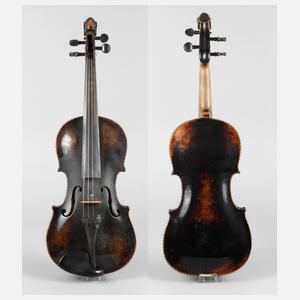 um 1900, Modell Stainer, innen mit Resten alten Modellzettels, ungeteilter Boden in dunkelbraunem Lack, umlaufende Fileteinlage, rissfreie Decke, Alters- und Gebrauchsspuren, mit zwei defekten Bögen, L Korpus 36 cm.