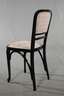 um 1910, bestehend aus schwarz gebeiztem Auszugstisch mit Messingfüßen, Einlegeplatten nicht beigegeben, dazu sechs Polsterstühle, gemarkt Thonet, aus Buchenbugholz, schwarz gebeizt, wohnfertig restauriert und neu gepolstert, Maße Tisch 80 x 120 x 95 cm.