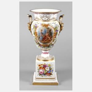 1. Hälfte 19. Jh., Pinselmarke J.P., dreiteilig montiert, feine polychrome Aufglasurbemalung, reiche Vergoldung, schauseitig eine Kartusche mit allegorischem Motiv, reiche Blütenbuketts und Blattranken, ornamentale Vergoldung, etwas berieben, am Mittelteil fachgerecht restauriert, H 50 cm.