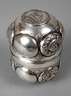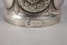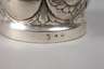 wohl um 1880, Silber gestempelt Halbmond, Krone, 800, Herstellerpunze SR? mit Krone, in barocker Form getrieben und innen vergoldet, im Boden Bildnisse Gustav Adolph II. von Schweden und seiner Gemahlin Maria Eleonora von Brandenburg, umlaufend gebuckelt mit reliefierten Blüten, H zusammen 11,5 cm, G ca. 215 g.