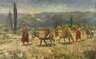 Bauersfrauen mit beladenen Maultieren, in lichtdurchfluteter, gebirgiger Landschaft mit Säulenzypressen, pastose Landschaftsmalerei mit lockerem, breitem Pinselduktus, teils in Spachteltechnik, Öl auf Hartfaser, 1970er Jahre, unsigniert, gering reinigungsbedürftig, original gerahmt, Falzmaß ca. 46,5 x 74 cm. Künstlerinfo: dt. Tier-, Jagd- und Landschaftsmaler (1928 Netzschkau bis 2000 Reichenbach/Vogtland), Lehre zum Farblithograph in der Großdruckerei Carl Werner in Reichenbach, hier Bekanntschaft und anschließende Förderung durch den Tiermaler Moritz Pathé (1893–1956), 1946–50 Studium der Malerei und Graphik in Frankfurt am Main, danach freischaffend als Kunstmaler, schuf unter anderem Wandgemälde, tätig in Reichenbach im Vogtland, Quelle: Frank Weiß ”Malerei im Vogtland” und Internet.
