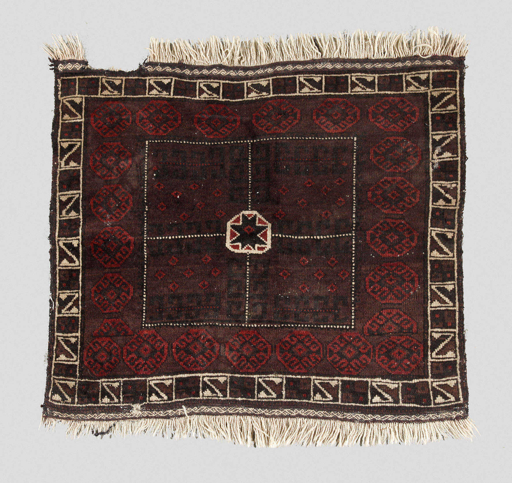 Mitte 20. Jh., kleinteiliger Dekor über dunklem Fond, Randbeschädigungen, Maße 74 x 63 cm.