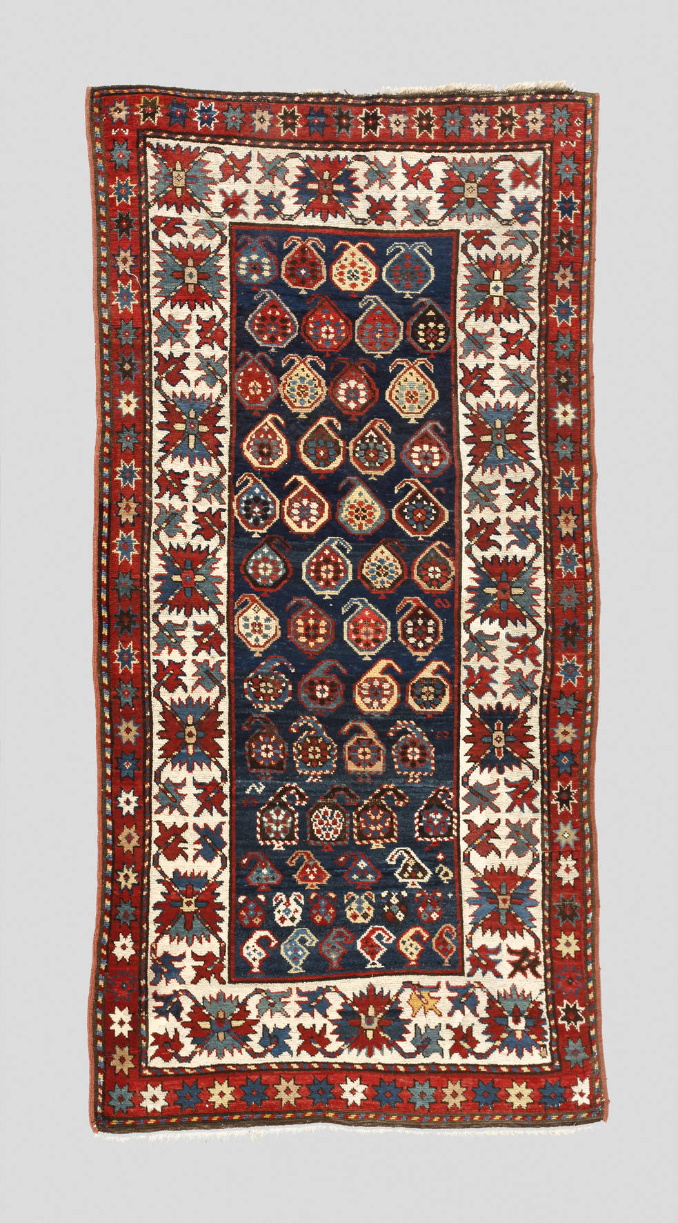 1. H. 20. Jh., in leuchtendem Kolorit, alte Nachknüpfungen, Maße 237 x 110 cm.