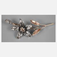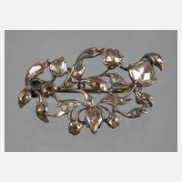 1. Hälfte 19. Jh., Gelbgold geprüft 585/1000 und Silber geprüft, in Form eines stilisierten Blütenzweiges, besetzt mit zahlreichen Diamantrosen von bis zu 5 mm, minimale Tragspuren, Maße ca. 18 x 33 mm, G ca. 5,4 g.