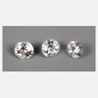 drei Stück, teilweise Altschliff, Farbe Wesselton, Reinheit Small Inclusions – Piqué I, Rundiste teilweise beschädigt.