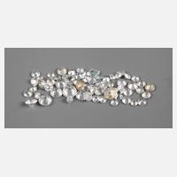13 Stück, Farbe Wesselton bis Crystal, Reinheit Very very small Inclusions bis Small Inclusions, max. Steingewicht 0,12 ct.