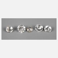 fünf Stück, Farbe Wesselton, einmal getöntes Weiß, Reinheit Small Inclusions, Rundiste teilweise beschädigt.